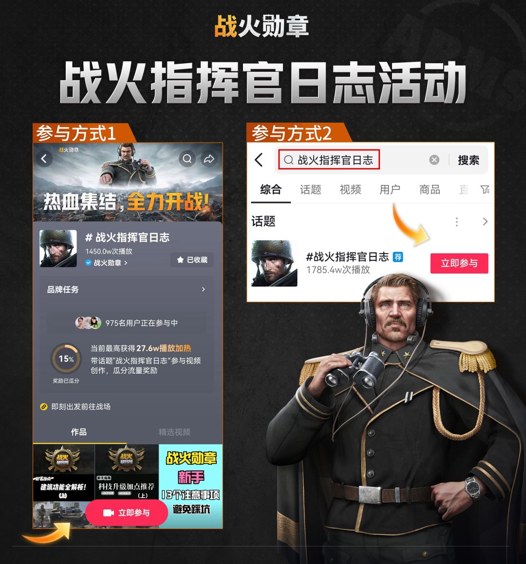 尊敬的指挥官: 五一劳动节即将来临,在这期间社区活动已全面上线。参与投稿,庆五一,赢大奖! 1. 截止至5月19日,前往抖音参与【战火指挥官日志】征集活动,按活动要求发布游戏内的战况实录,攻略分享等内容,就有机会赢取华为P60 ART、千元电子外设、官方助力礼包等丰厚奖励! 2. 前往bilibili参与【战火勋章集结号令】视频投稿与直播活动,按活动要求投稿游戏解说、实况、剪辑等内容或在【战火勋章