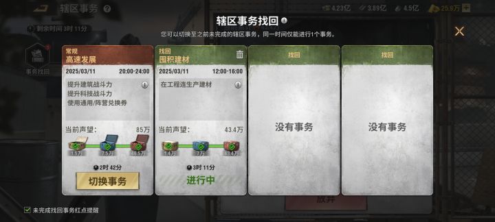 周二,军备主题:建筑升级,积分:880万达标。12:00~4:00辖区:囤积建材,完成方法:这里需要玩家根据自己的工业科技等级、特权等级来计算自己的工程连建造时间,没有固定时间,以特权14级、工业科技满级、拥有企鹅冰堡基地皮肤为例(可减少3%的工程连生产时间),生产100个混凝土的标准时间是3天15时(若是在赛季内占领有前线要塞,则为3天12时)这个时候在周五上午的7点钟之前将工程连第1、第2生