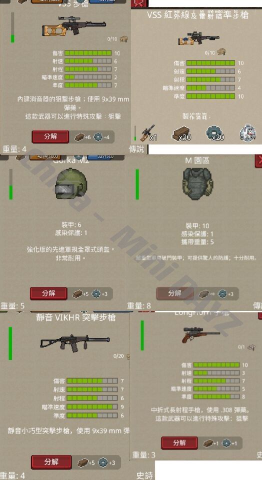 在满怀期待中终于赢来了近几个月内最大的更新内容,官方制作组以于本月10.13正式官宣并在谷歌商店中更新了最新版本下载资源。 如果你没有谷歌,请加企鹅群: China - Mini DAYZ玩家社区:778205288 群文件→二代游戏资源→带有标注1.21的安装包 1.21更新内容: *新武器: VSS 9x39 VAL 9x39 土质手枪 .308 *新装备: “M”俄式重装 Gorka “M”