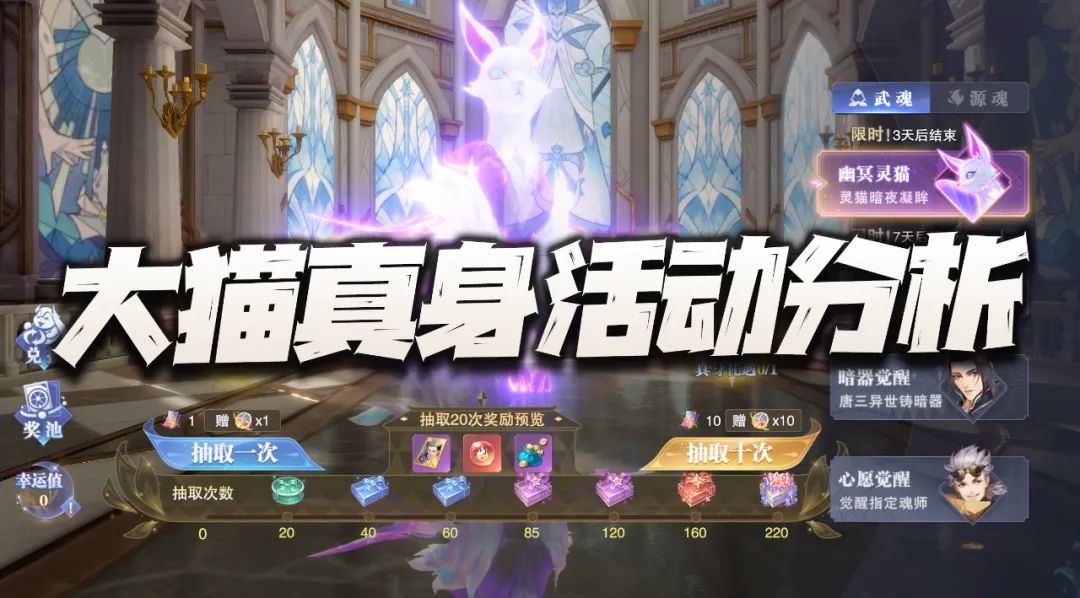 大家好,我是正在买彩票的何二维一。今天的攻略咱们来简单聊一聊SP朱竹清的武魂真身活动,这次是SP朱竹清的真身第一次上线,不过这个真身很久之前就有消息了,当时维一还记得是和SP阿银的真身一同被爆料出来的,所以其上线也只是时间问题而已,按照过去游戏的惯例来讲,在SP魂师返场的时候同时上线其真身也属正常现象,不过官方在2月份还没有上新魂师的前提下如此频繁的返场了两位SP和上线了他们的真身,这点就很有意思