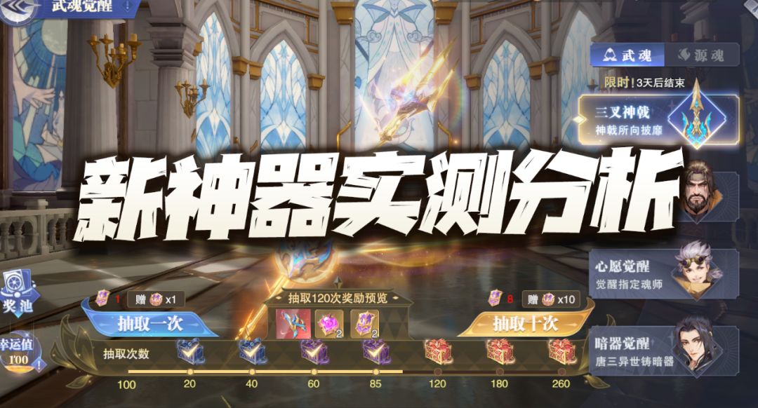 大家好,我是正在惊叹于活动太多的何二维一。 今天全新神器“海神三叉戟”也正式上线了,在之前的攻略和预期分析文章中,维一已经不止一次的提到过这个新神器的上线,所以老水友应该不会特别陌生与惊奇,唯一的惊奇之处应该也只有其上线得如此之快的疑惑吧......当然针对这个新神器,咱们今天的攻略还是得来说说其获取的分析与实战测试的对比分析,希望能给大家带来一些小小的帮助。 首先我们来说如何其获取分析,这个神器