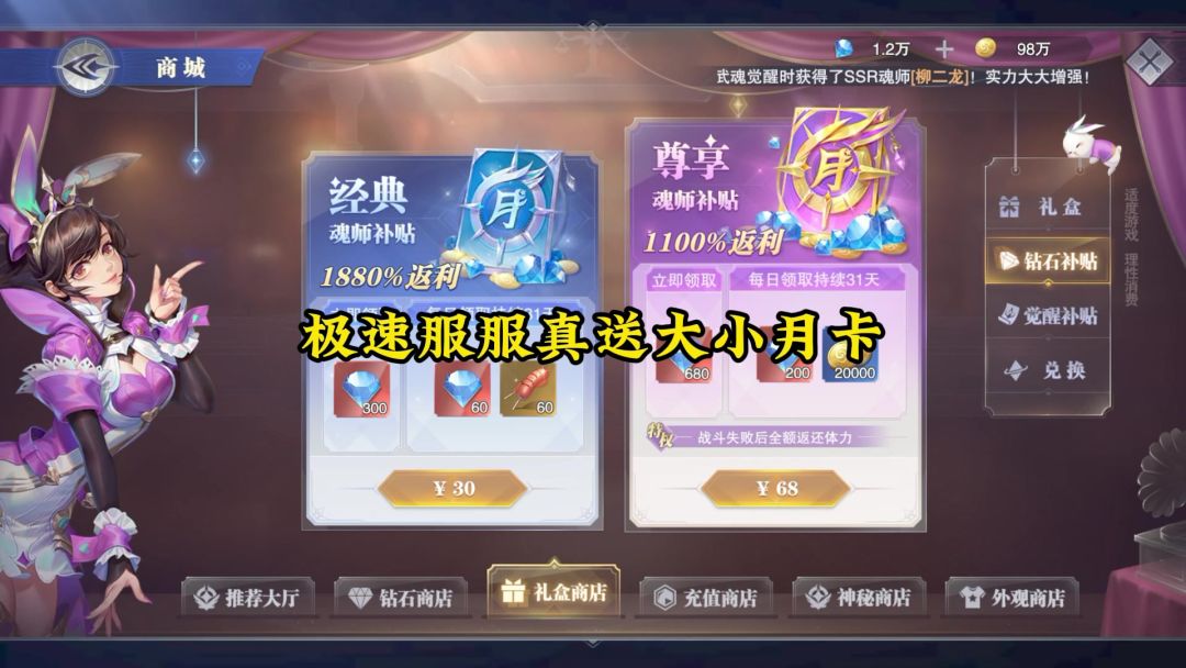 极速服大小月卡真送!