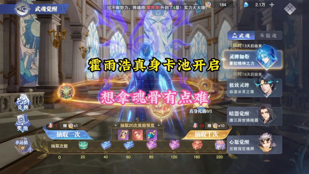 霍雨浩真身卡池开启想拿魂骨有点难