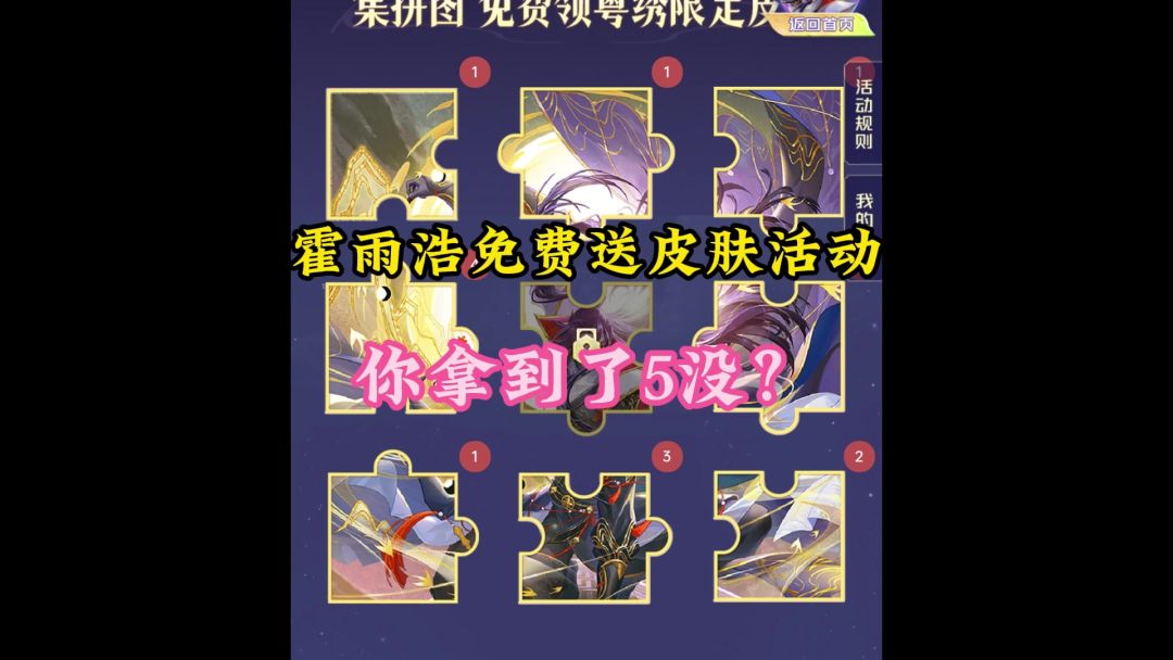 霍雨浩免费送皮肤活动,你拿到5没