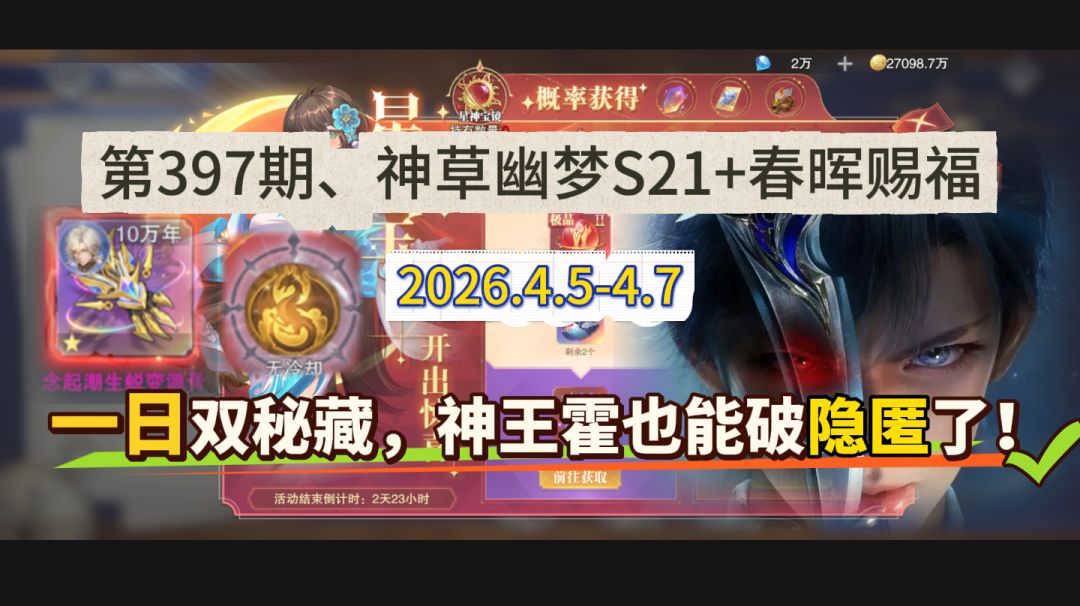 大家好,我是正在研究周年庆活动的何二维一。 今天咱们的攻略文章来简单的聊聊游戏两周年庆活动的相关事宜,毕竟这次的活动量还是比较大的,且听维一细细到来。 首先SP宁荣荣的周年庆UP池毫无疑问是大家所最为关心的活动,这次的UP池特点和日常的UP池基本一致,不过官方在此次的升星礼遇中,红色5星不仅加入了皮肤的奖励,还加入了SP宁荣荣第三专属魂骨,这点大家需要注意一下。 此外这个SP宁荣荣的专属头像框,普