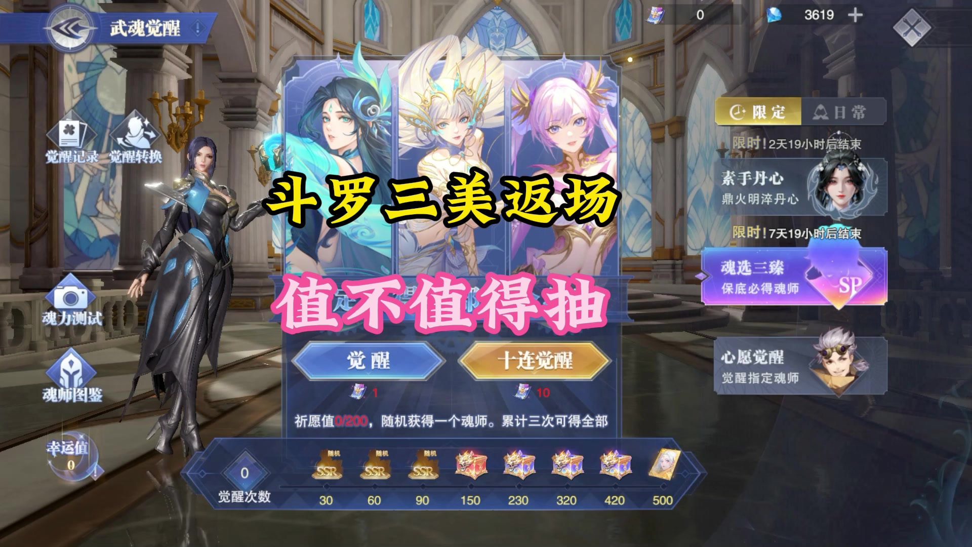 斗罗三美今天返场,值不值得抽#发现好游戏 #斗罗大陆 #斗罗大陆魂师对决 #游戏日常