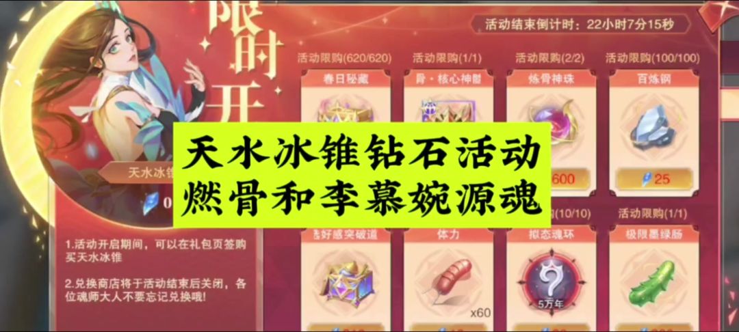 天水冰锥钻石活动,燃骨和李慕婉源魂