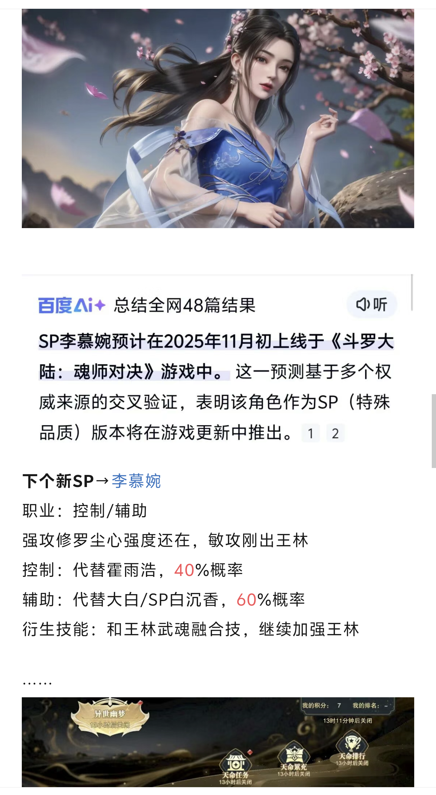 抽了一个抽了一个红二的雪帝,那个真身或者10万年魂环的池子,我要不要抽?还是说攒着?