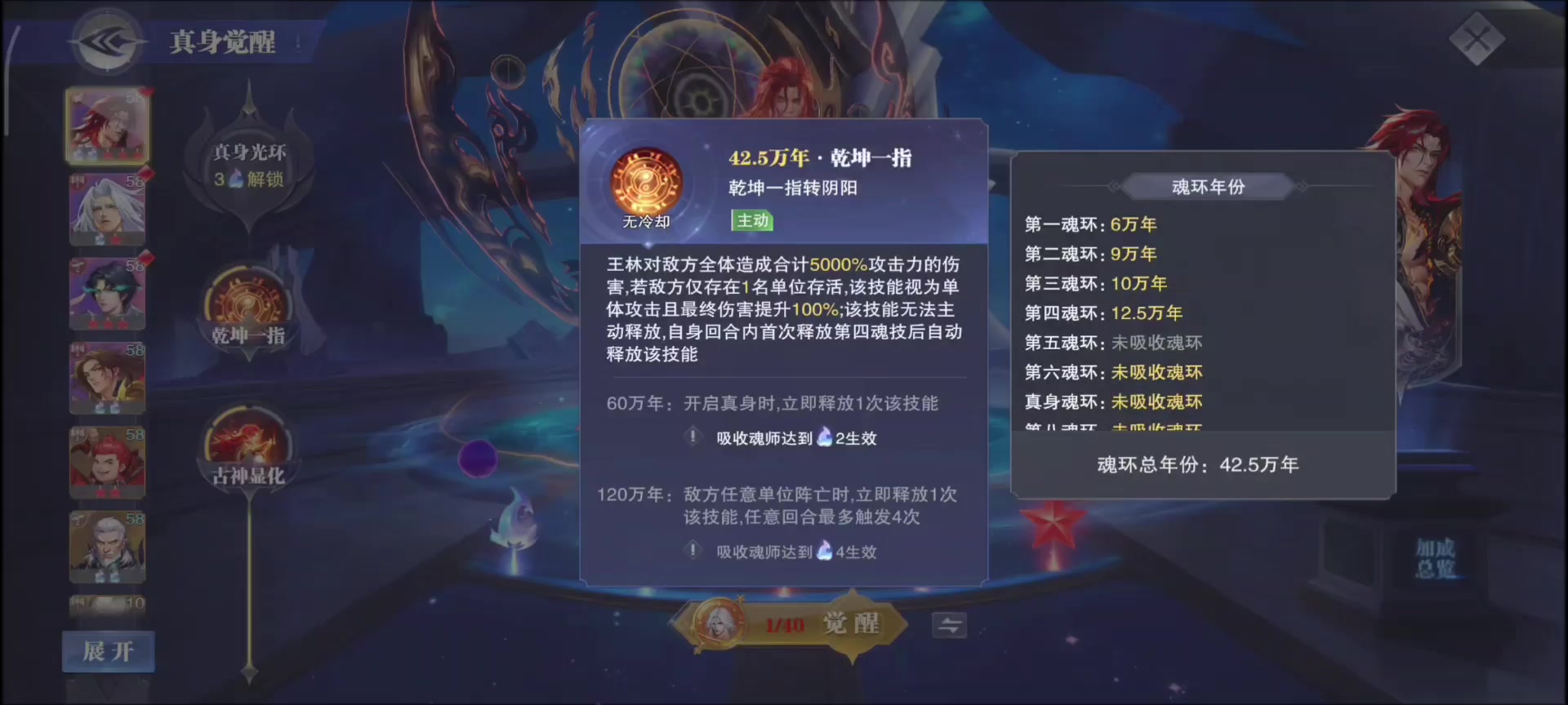 有没有大佬帮忙看看,左边这个双系的魂环没法重生。右边的4个可以升左边,但是我右边的4个双系升到15万年之后,没法用左边这个双系升到20万年。有点头疼