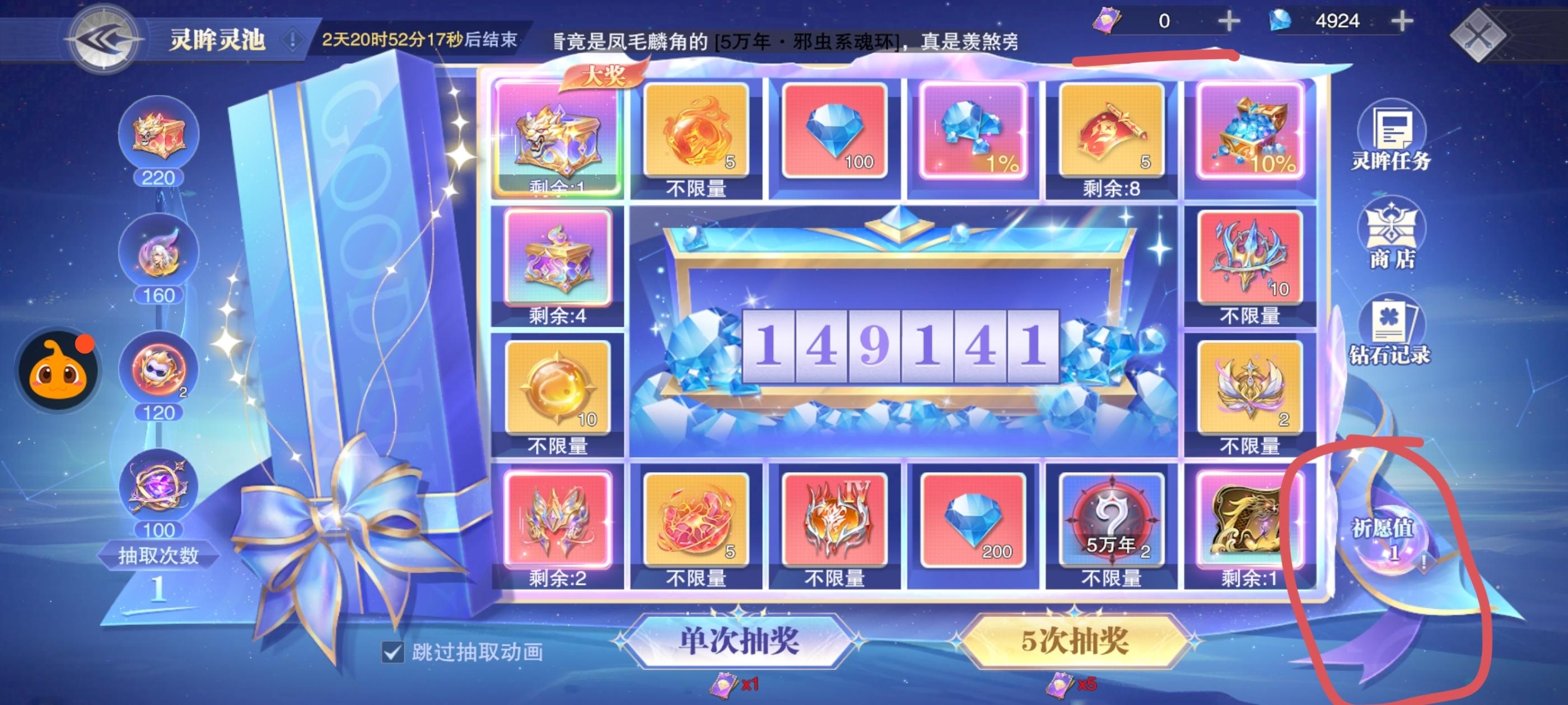 今天的灵眸极致活动,为啥我用灵眸祝福币买了灵眸宝卷,抽的时候一张都没有,唯一一张还是金币买的,这魂师有bug就算了,活动还崩了?