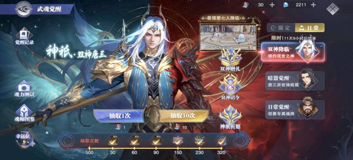 蓉蓉320抽没出,霍雨浩400抽保底,神雪400抽保底,今天上去随机魂师给了个神三!