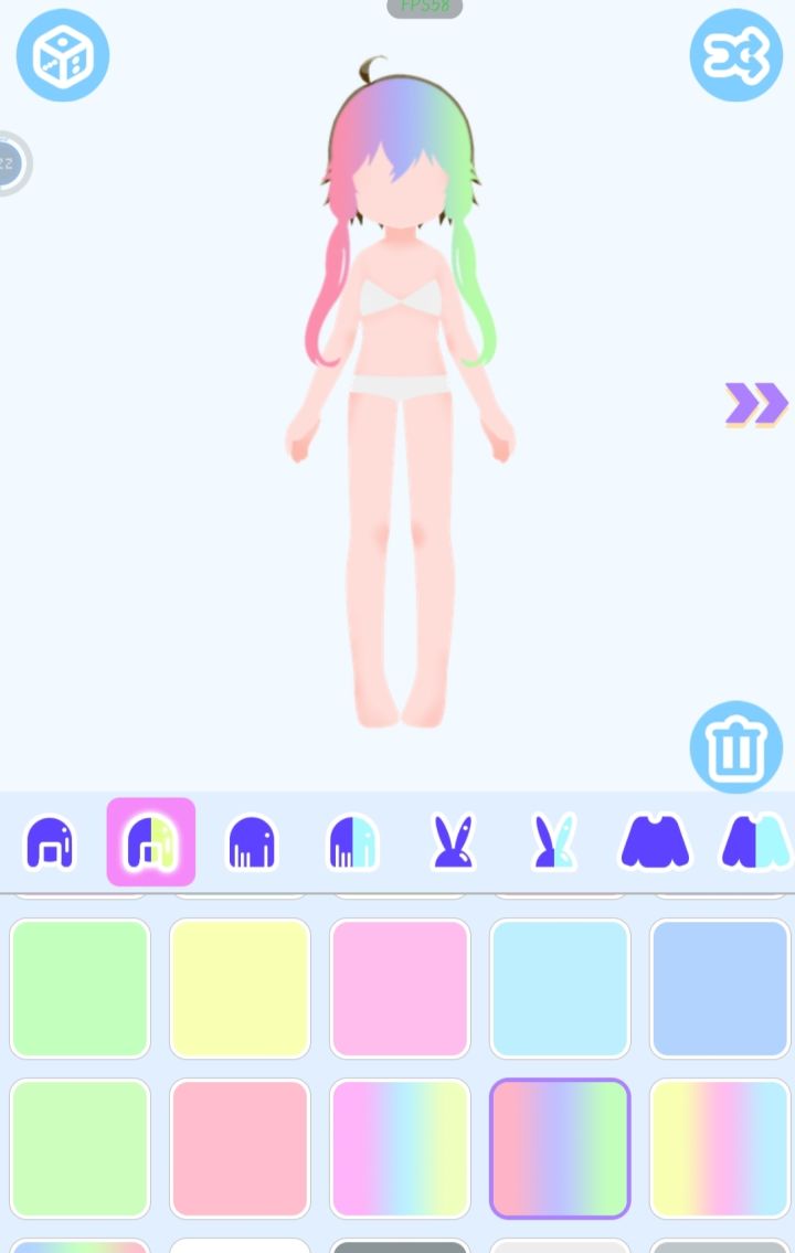 感觉和另外一个换装游戏有异曲同工之处,但是相对于另外一个游戏这个游戏它的人物可以说是比较缩小并且拥有全身图有袜子和鞋子,除此之外我还有一个点想说的就是它这个按钮的声音简直和那个游戏一模一样(并没有说这种声音就是一定是谁的)。