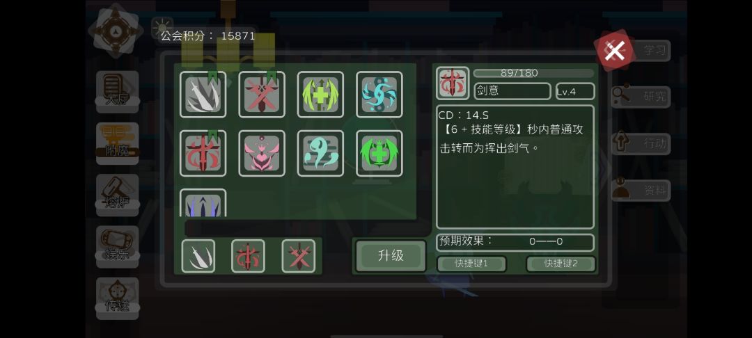 这个游戏是个刷子游戏,不要真的当挂机游戏看——看看锻造里恐怖的材料数量,就知道正常人是凑不齐的。目前滑动屏幕有时候有些bug,游戏有时候也有些卡,搞不清楚是个啥子原因。 说下攻略。 首先是游戏提升战力的渠道:各种升级,主要是天赋、技能、装备、等级(也就是血量)。 天赋:天赋到底是个什么点的机制我还没搞清楚,因为绝大部分时候点了前面的才能点后面的,但是又存在能直接点的“终极技能”——左上角那个,加暴