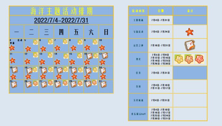 亲爱的各位店长大大们~全新海洋主题来咯!!!【更新时间】7月4日9时停服更新,预计时间2小时,各位店长大大请合理安排游戏时间哦~记得提前收豆子呀~【更新内容】海洋主题活动(7月4日 - 7月31日)1. 新增海洋主题 主题收藏 (7月4日-7月31日)宝箱活动 (7月4日-7月24日)运营之神活动 (7月16日-7月31日)2. 新增海洋主题专属任务(7月4日-7月31日)3.