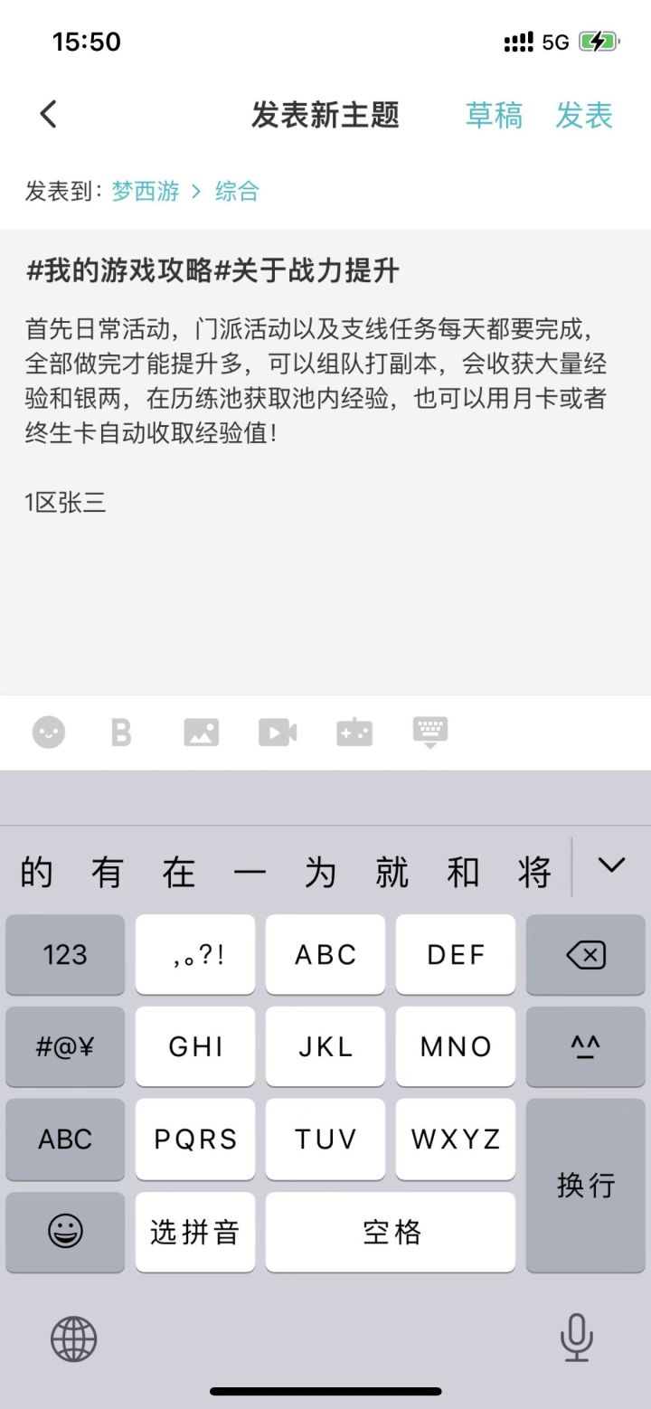 各位小仙友你们好呀!梦梦又来搞搞阵了!小仙友可以分享你们的梦西游各路攻略,让新手伙伴见识一番!活动内容:活动时间:参与方式:step1:点赞本帖并在梦西游社区论坛【发帖】晒出你游戏中的任意技能伙伴灵兽攻略;step2:在晒出的帖子最后留下正确的【区服+角色名】发帖格式:#我的游戏攻略#+自拟标题+完整的图文或者视频(必须附带话题#我的游戏战略#)如图:【活动奖励】(1)第一次分