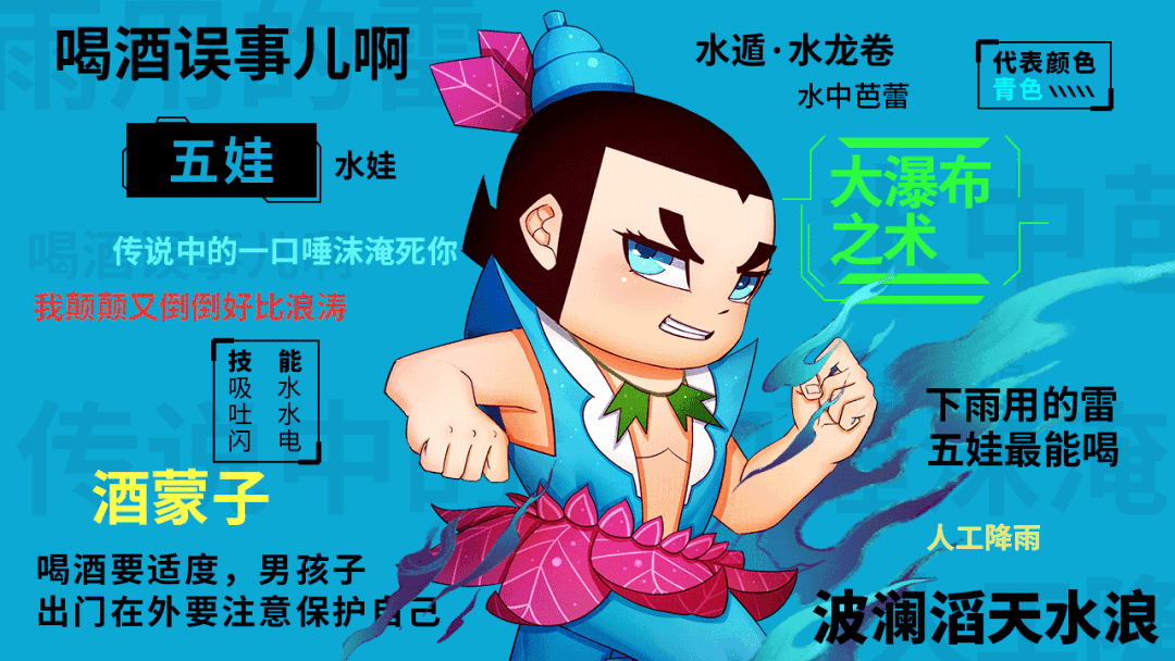 我,就是双胞胎葫芦娃弟弟,出生的姿势暴露了我真实身份——芭蕾舞王水娃子。最近天旱,好久不下雨,爷爷正因为没水而发愁,是我大显身手的时候了!“爷爷,你别着急,看我的!”“嘿ei~嘿!”看我的水遁·大瀑布之术!先把泉水给补满,浇浇地,再逗逗六弟七弟,挠个痒痒,这大热天的给你们冲个冷水澡,舒服吧!嘻嘻~正当四哥大秀火技的时候,受了伤的二哥听到三哥在召唤我们,这该死的妖精,绑了我两个兄弟,还弄坏了