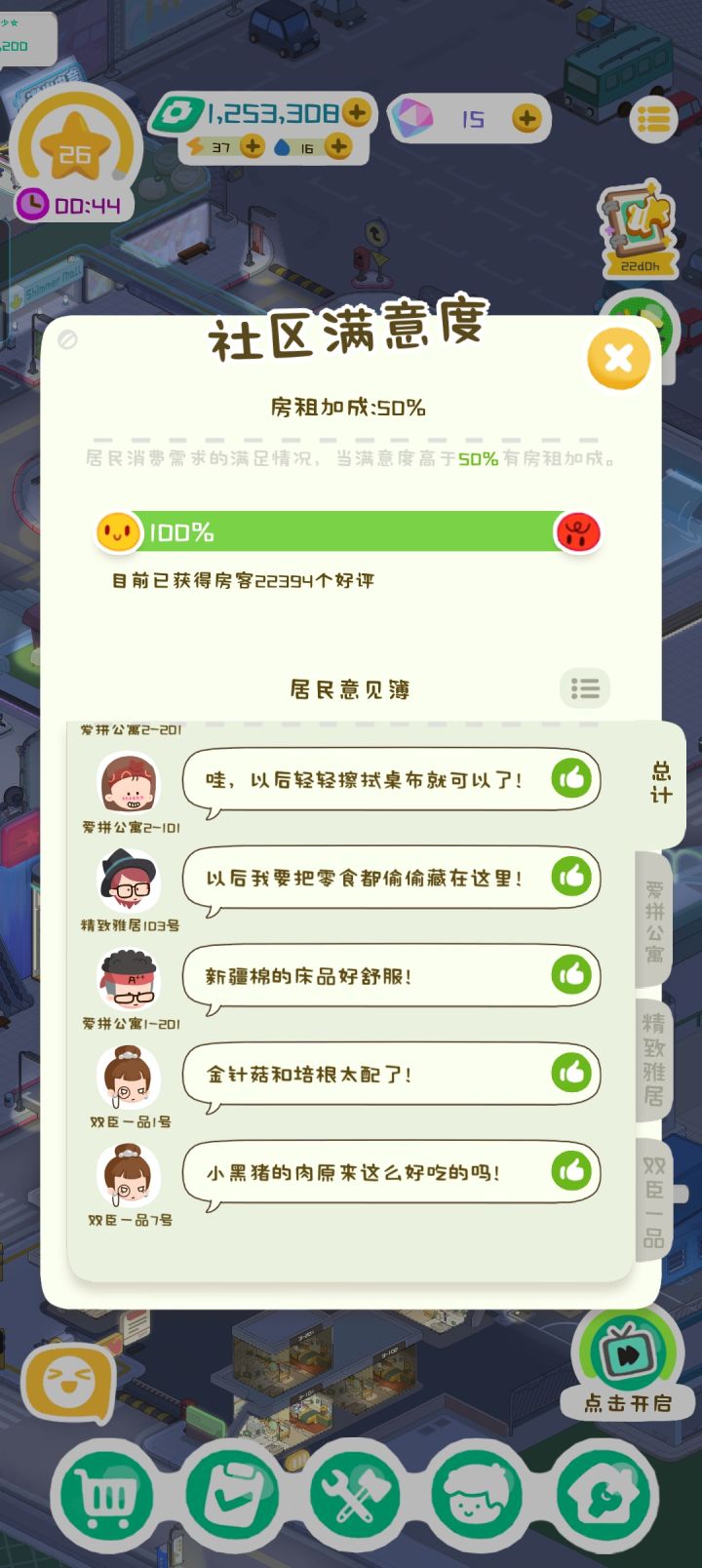 官方包租婆 : 非常感谢这么用心地分享对游戏的喜爱!看到小房东在收集家具、装扮别墅时收获的成就感,还有对租客故事的期待,我们真的超感动~ 小红花功能的反馈已认真记下,租客背景细化、新场景新种族等想法也很充满创意,开发组会好好参考~ 感谢你的推荐和暖心提醒,祝你升级顺利,在游戏里收获更多治愈时光呀!