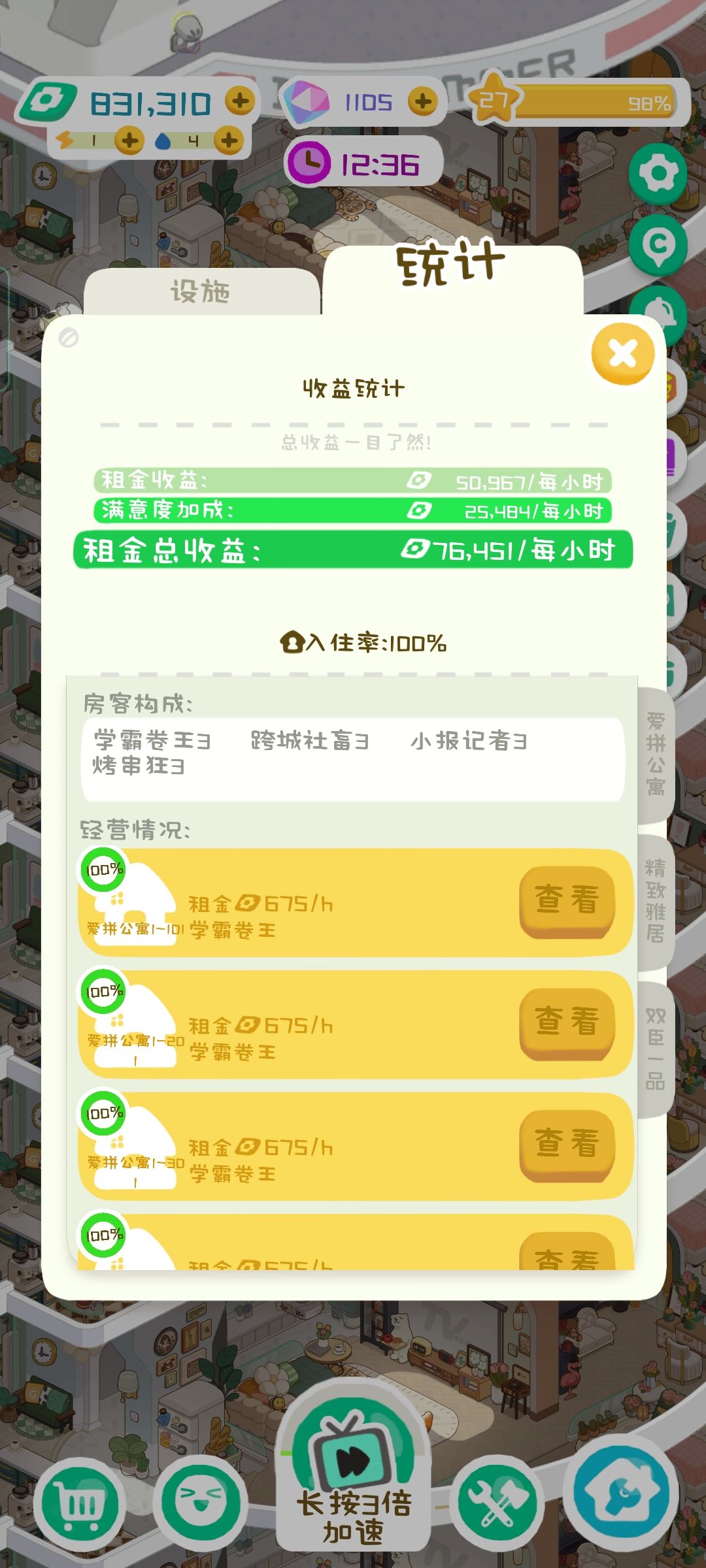提一嘴作弊方式,在手机设置里修改时间,直接改日期就行了,只收益60分钟内的房租,所以改一个小时一个小时就行,如果你懒也可以直接改日期,更方便一点~