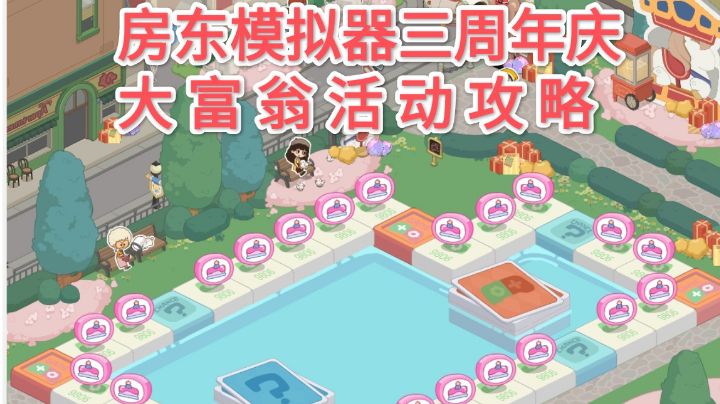 各位玩家,你们好,转眼间,房东模拟器已经三周年啦,期待已久的大富翁活动终于开始啦![表情_开心] [表情_期待]新玩家第一次体验,我来指导一下。 在进入大富翁活动页面以前,我们先把免费奖励领取了,请看下图。 领完了免费奖励,咱们正式开始大富翁活动,请看下图点击进入。 进入以后,开始投骰子🎲 骰子🎲一共12+看广告18次。 每天一共30次投骰子。 积攒小熊币兑换限定家具,请看下图 个别方格会有随机奖