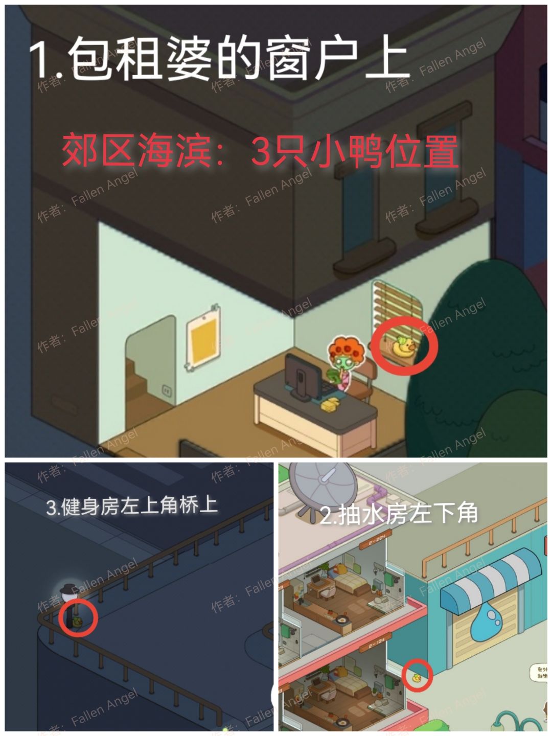 📢后续继续补充,有想问的问题,可以留言 一、拼图大作战 !!!特别提醒:寻找鸭子/礼盒/蛋糕任务,需要先点任务才能找到 图一 3只小鸭子 图二 3个礼盒 图三 3个蛋糕 图四 10个租客同时在花园 图五 电影院播放满座电影、 偷窥跑调先锋的生活、 8位居民同时健身、 和包租婆聊天、 单身公寓一栋12点所有租客在睡觉 下图一 下图二 下图三 下图四 下图五
