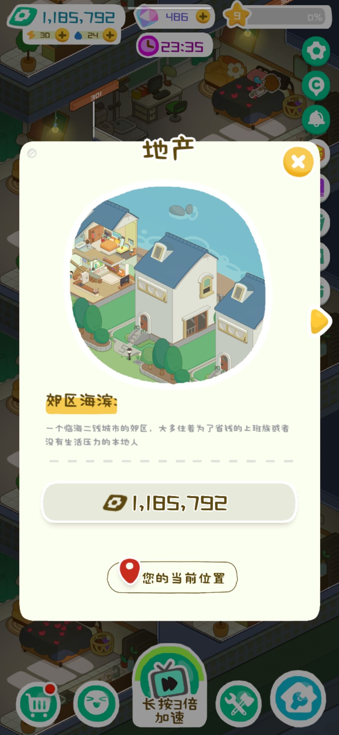 郊区海滨分布图 (强迫症每一种房客都得有一个真的很抓马) 招完高花费的房客之后菜店跟诊所的位置就满了 迫不得已找两个速食爱好者来抵抵 当房间租金大于60时无业游民会自动退房(若没有手动赶走) 公益设施 (健身活动区,广场舞场地,社区小公园) 无需去建 只会给你增加差评 然而差评会降低你的收益!! 差评 前期无需在意差评 房客活动时间 设施所需等级以及时间金额 员工招一个就够 每天都会扣工资 还有社