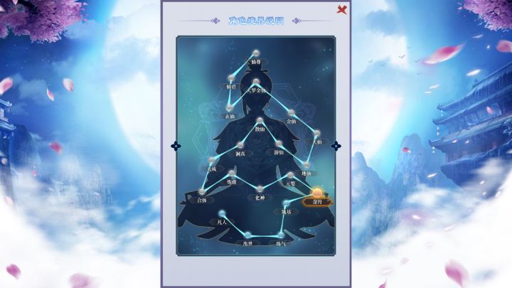 【凡人】凡尘世俗中拥有灵根者,若能攀得仙缘,有幸踏入修仙之门,加以磨练,必将成为一方大能。【出世】我辈修真者,若非潜心苦练,不可出世。【炼气】炼精化气,以自身精血为引,吸收灵气入体,体内经脉初步打通。【筑基】灵气经过凝练液化,在全身经脉中循环,肉身与法力皆获得较大增长。【金丹】以凡人之躯凝聚金丹,成就无上法力,可开宗立派,教导弟子。【元婴】碎丹成婴,法力浑厚,成为一方巨擎。达元婴者,已近