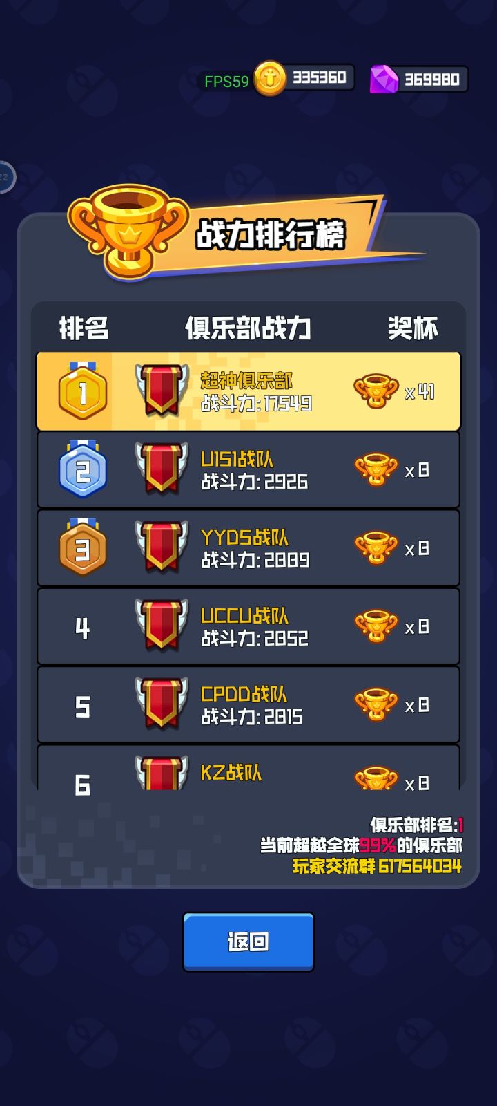 bug游戏,稍微研究一下就会发现钻石和金币是无限的。说几个点把,很容易“通关”1.过关时的对手会根据你的战力增加儿增加,所以靠增战力过关是没用的,其实过关只需要点加速键,不管你战力够不够,都能过关。2.需要的资源是金币和钻石,稍微有点金币就可以去开英雄,只要是能用金币买的都买,看广告的别点,浪费时间。买的英雄去分解,获得大量钻石。有了钻石去超神商场不停的花500钻石换金币,这样一来金币只会越来越多。3.这个游戏唯一需要养成的是俱乐部等级,上条获得的金币用来升电脑配置从而提升俱乐部等级,俱乐部等级提升到8,14,22,32,42级就能开新级别的抽卡,对应的就是白银,黄金,钻石,大师。开了新等级后插抽卡区就在最新的级别抽卡。4.这个游戏不需要看广告,抽卡?胜利奖励翻倍?都不需要看广告。附上玩了3个小时的成果,图没咋推,没啥动力。