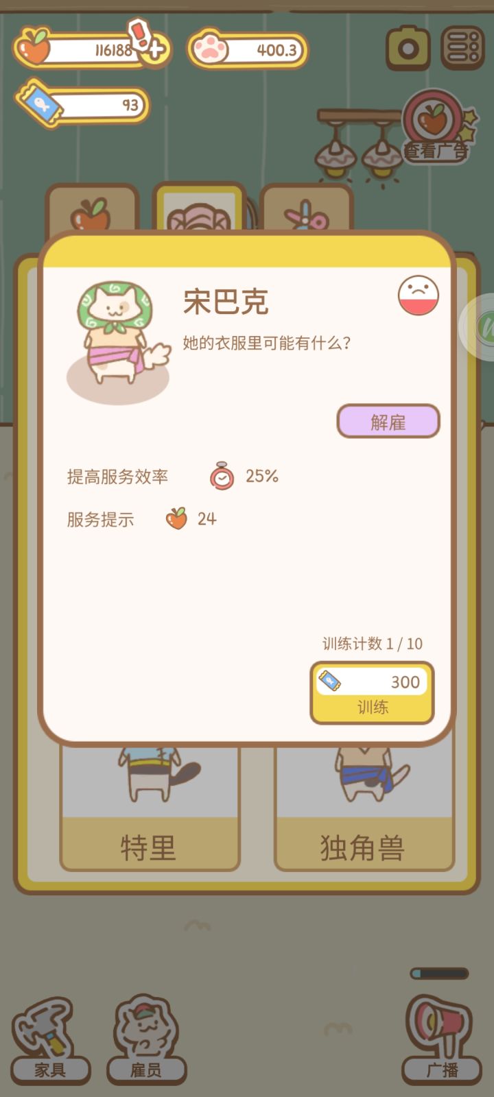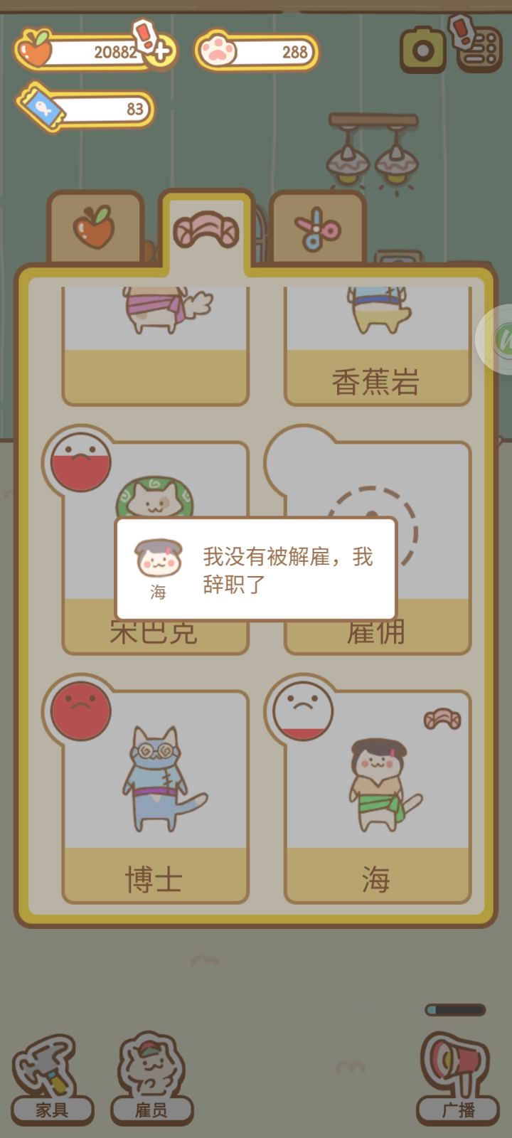 干了没一会就休息这么久,准备把一些数值低的疲劳了再解雇,让它们感受社会的险恶