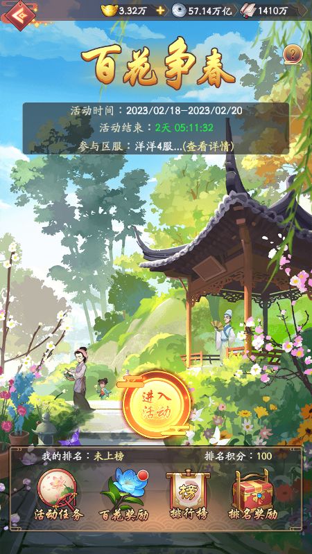 本文首发【大东家攻略组】公众号,未经授权禁止“抄袭文章”转载至其它平台。 活动名称 今天我们来介的活动是百花争春活动,这个活动是春季才出的活动,可以获得几款皮肤和很多兑换门客、皮肤和灵兽道具的材料,里包括西行令和美人令还有兑换皮肤的两个道具 ,其他的道具就是一些比较常见的材料那些了。 活动玩法 这个活动的玩法也是非常简单的,就是使用道具种出花朵,相当于是抽奖类型的,每次抽奖都是需要名卉花种的,这个