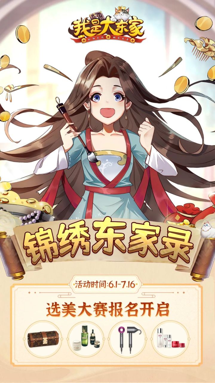 亲爱的东家你们好哇~首届「锦绣东家录」女神选美大赛终于在今日正式开启啦!LV PAPILLON TRUNK手袋\海澜之谜套装、戴森吹风机SK-Ⅱ神仙水套装等你来赢!除此之外还有周年限定礼盒专属限定头像框、气泡框等惊喜奖励大放送喔~心动不如行动!各位女神快来游戏内报名参与吧!【小宝特别提醒】本次活动仅限真实性别为女的东家本人报名参与哦!活动规则活动说明本次活动将通过东家自主上传自拍照,全