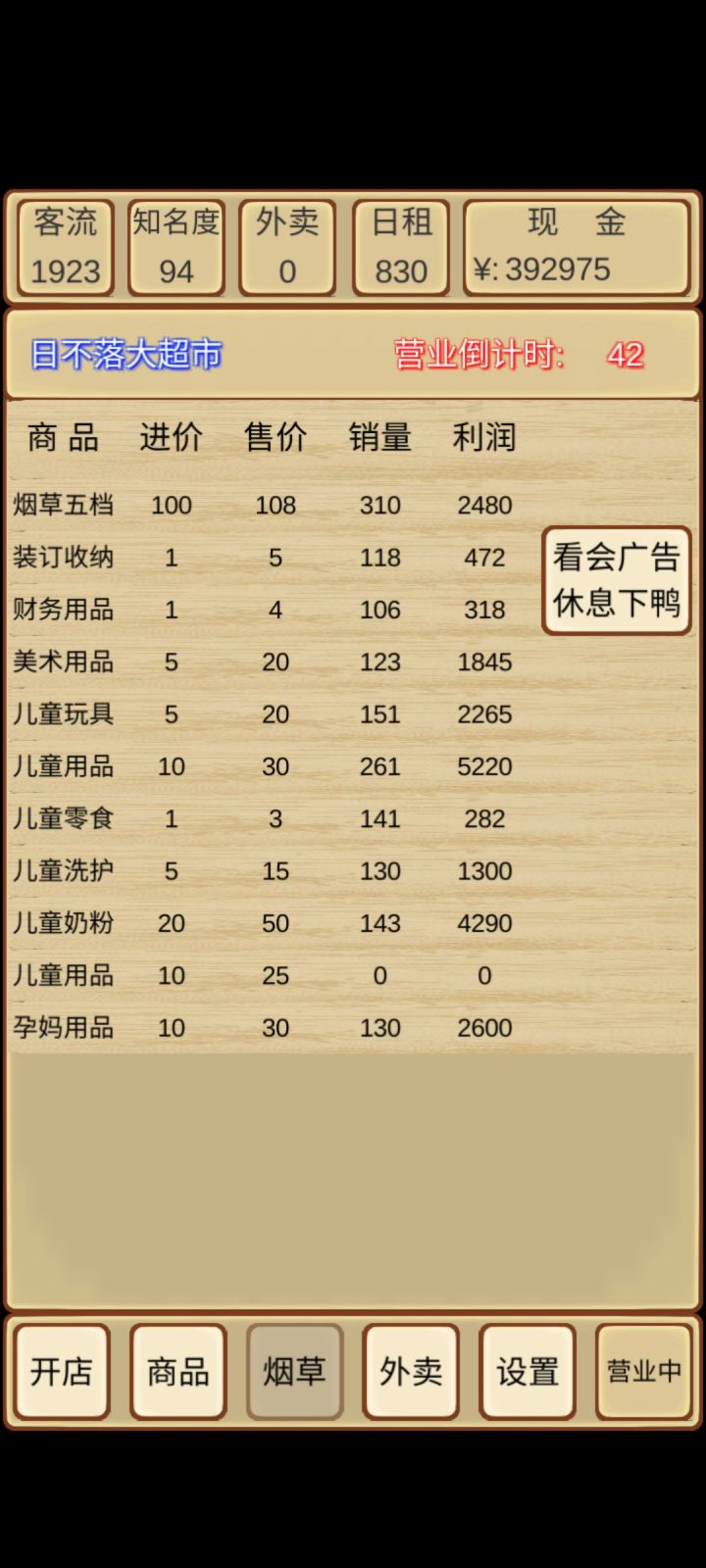 玩了差不多俩小时终于通关了,还有个bug两个儿童用品,卖不出去噻