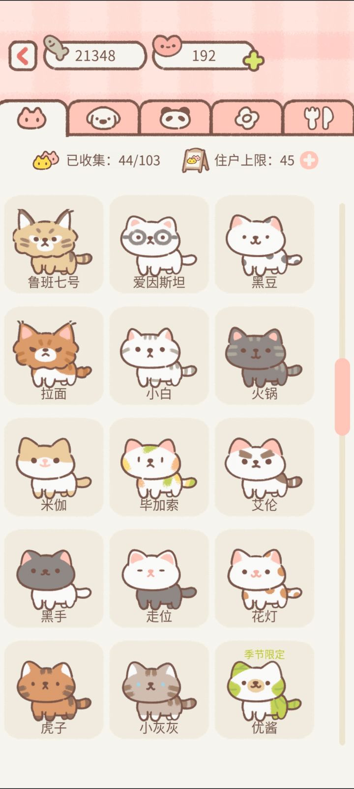 再来就是猫很难获得,我就记得我只有十几二十只猫吧好像,对我来讲一般是半个月或者更长的时间才能有新猫,然后就是我比较强迫症猫摸一摸什么的必须每一只猫都来,但是纯靠我自己记hhh