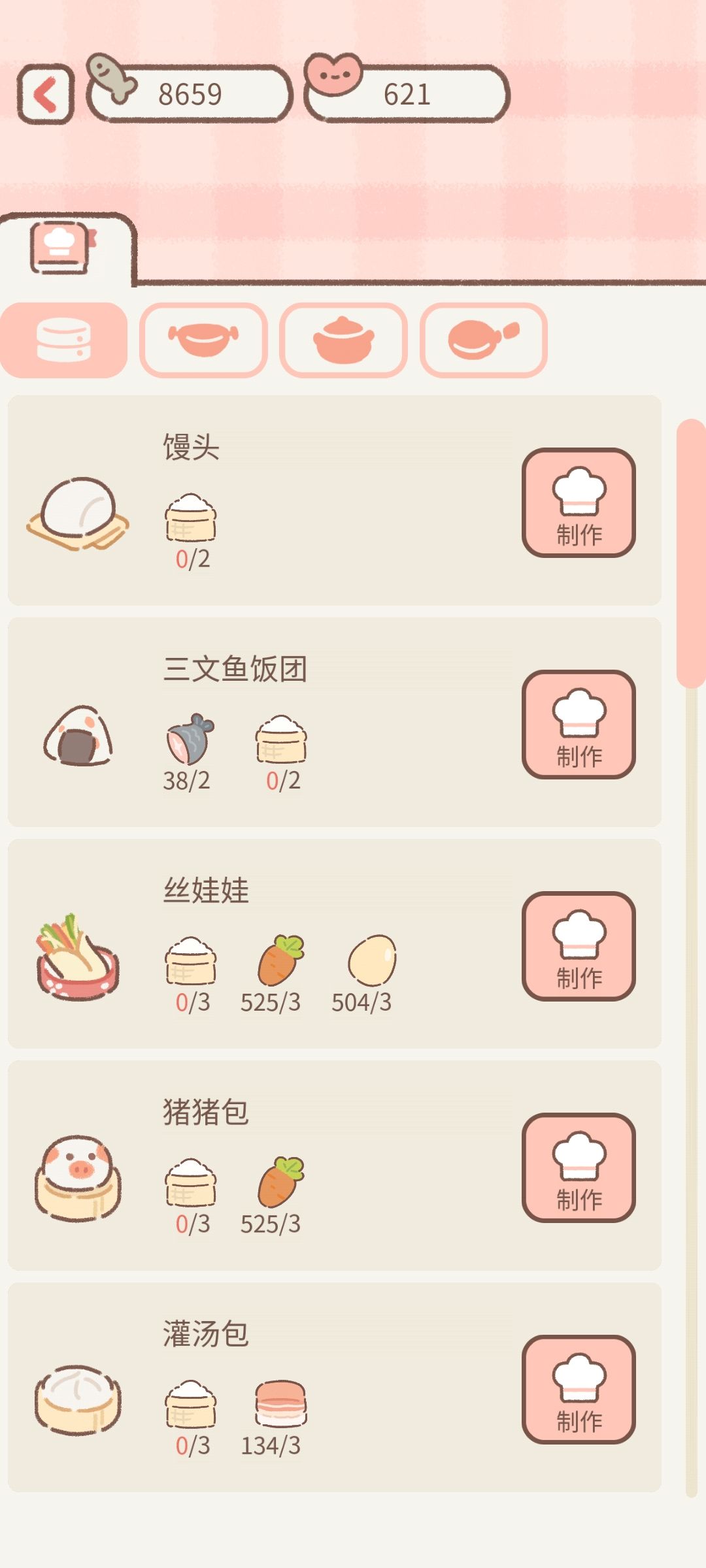 已经更新新菜品的菜谱了♡(不懂得可以在评论区问我,秒回放心) 所有调料和零食都是在扭蛋机获得的哦(还有葱,辣椒之类的!) 感谢taptap@赵 宝宝提供漏掉了三个菜品,锅包肉,回锅肉和糖醋排骨。 如果我有都漏掉的欢迎大家在评论区提醒我,我会及时更新上,尽可能的提供更全面的菜品!