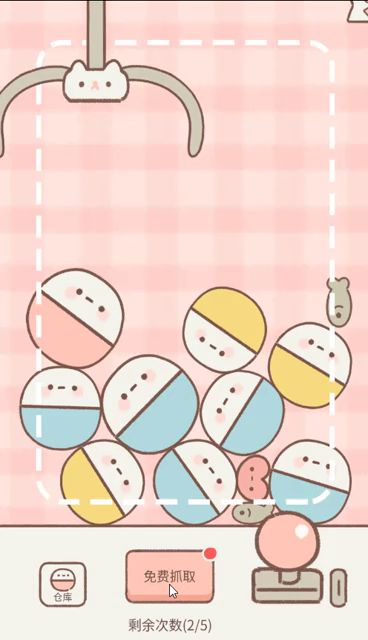 抓不到就是抓不到,怎么样都抓不到。上钩了也掉下来,概率是不是太低了讲道理??一天免费5次看广告15次,20次都夹不到,那我抓什么扭蛋啊,讲点道理啊,至少一天能出一个吧?