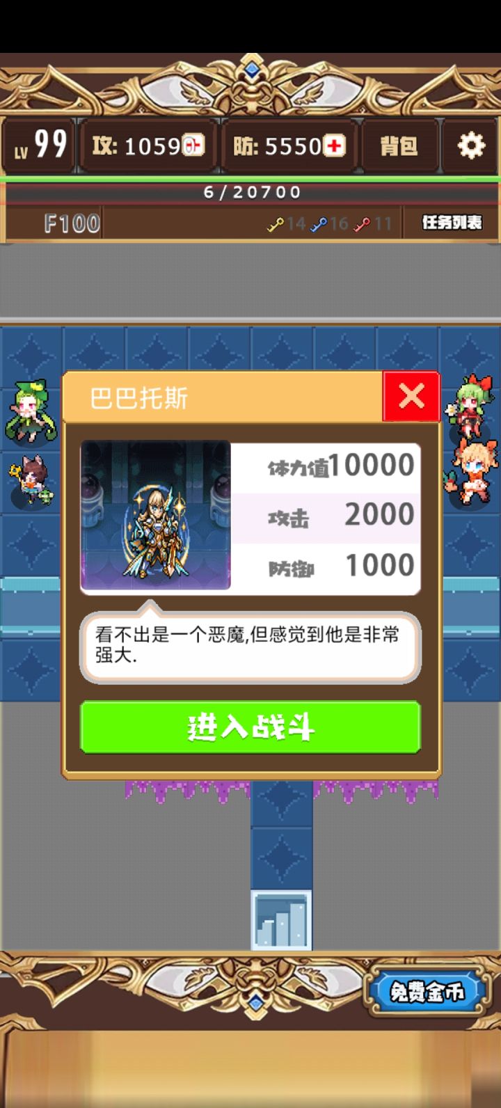 当我看到双倍经验和双倍xx的时候这个游戏已经和我无缘了。类魔塔游戏你游的优势在哪里?看广告吗