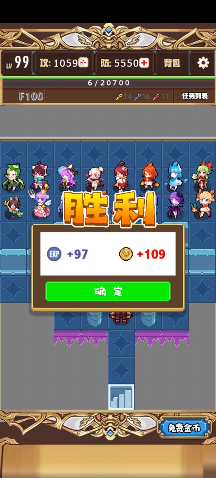 完全靠肝,没啥难度,回到之前的楼层怪会刷新,稍微努点力肝就是打怪打弟弟一样。Q版画质2星,其他哈哈