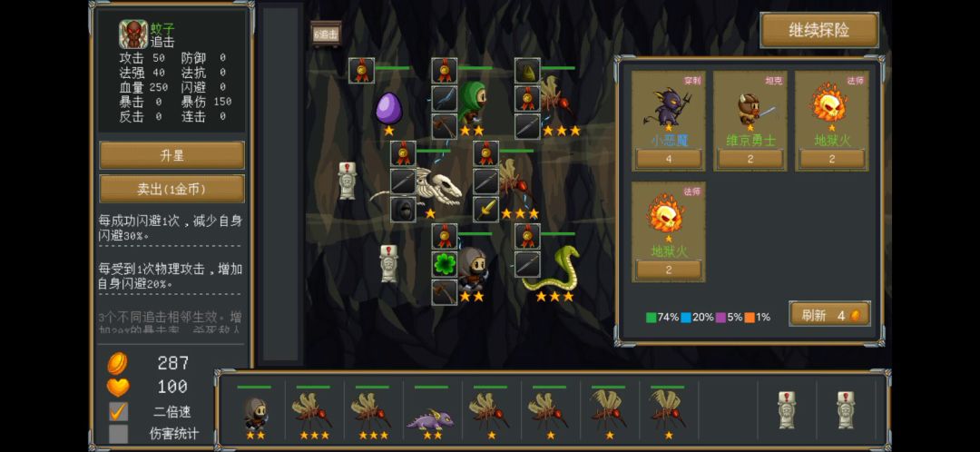 越到后面,敌人攻击越高。不管自己多少血都站不住,后面钱不够,星级跟不上,前排一下就死了。