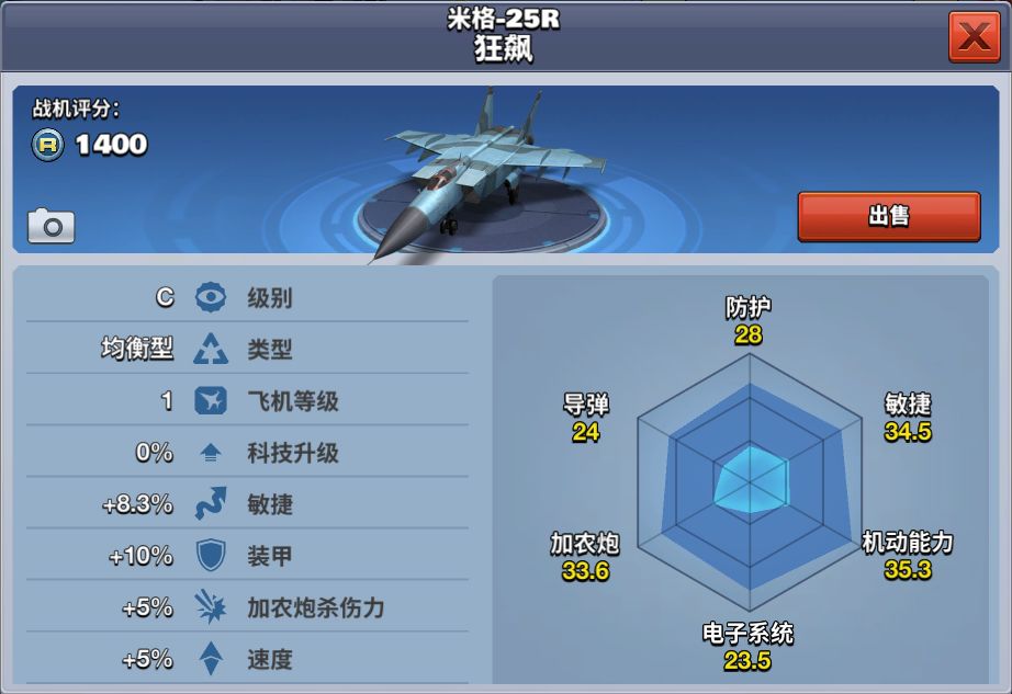 米格-25R狂飙是P型的改进型,与P型大体相似,有着无与伦比的高空性能。曾为了对付美国研发中的XB-70轰炸机与A-12/SR-71“黑鸟”高空高速侦察机而研制。 该架飞机属于C级均衡型飞机,9级解锁,商店中推送,购买需要花费68000金币。米格-25R狂飙拥有较好的装甲,够快的飞行速度,适合速度控的新手玩家。