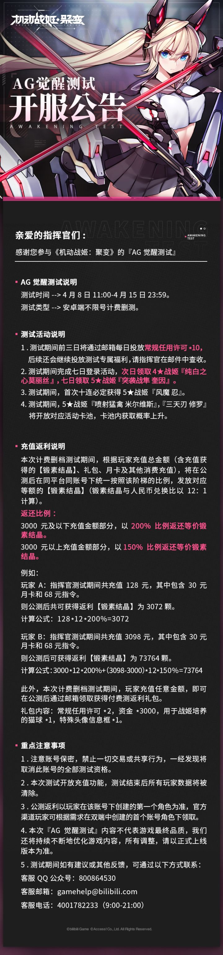 【AG觉醒测试】4月10日维护公告