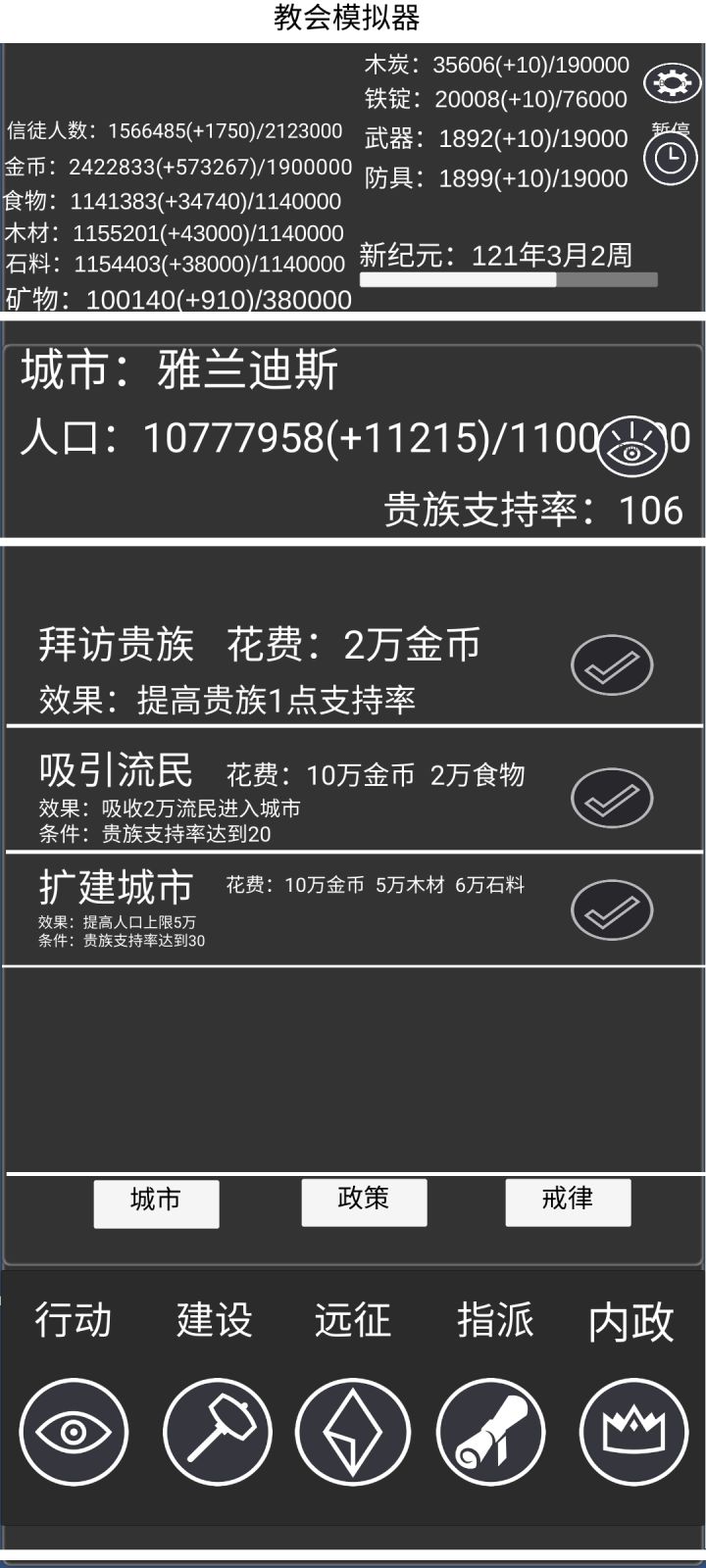我好像遇到bug了,当你抢夺完初始城市政权后(没打过)在去野区(我打的是八级)练级时敌人不管怎么刷新都是城防军