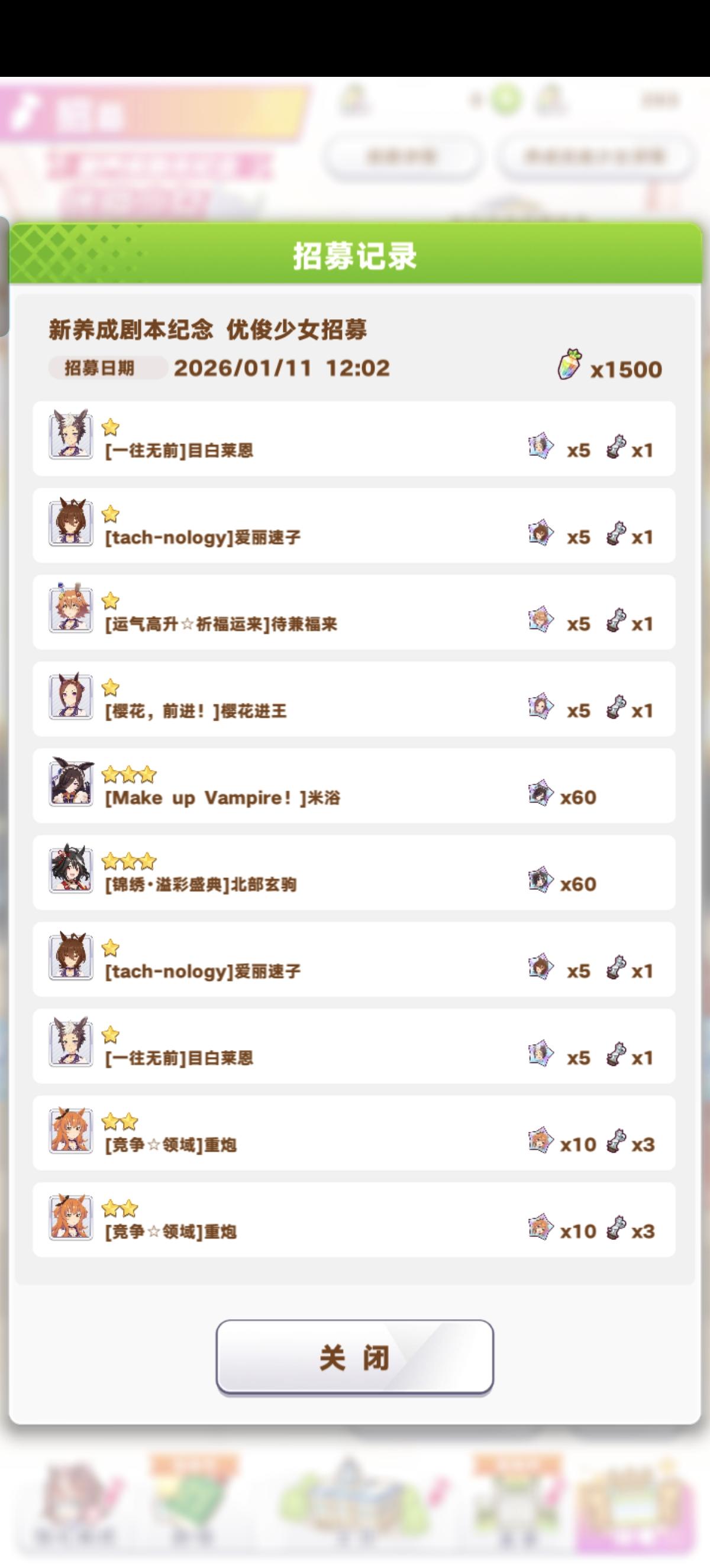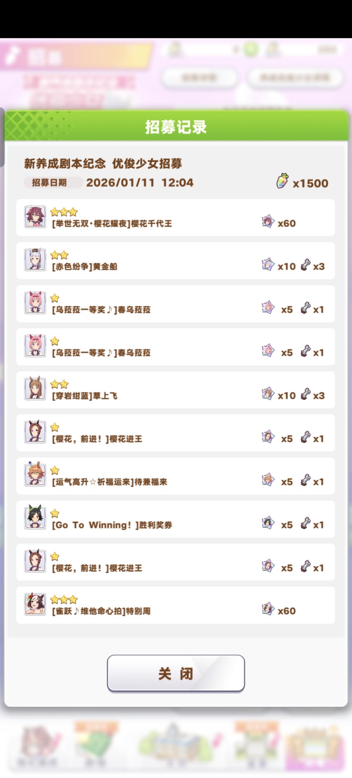 50发7个3星,顺便问问大佬们里面有没有能用的。#欧皇附体 #闪耀优俊少女 #闪耀优俊少女手游