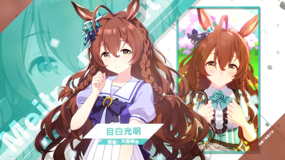 全国的新人训练员们,来认识一下那些在特雷森学园和我们一起实现梦想的学生吧! 稳重大方、我行我素的目白家大小姐“目白光明”。虽然做事偶尔笨手笨脚,但她始终贯彻自己的步调。有人甚至传言,她或许才是目白家最不容小觑的人物。 配音:大西绮华