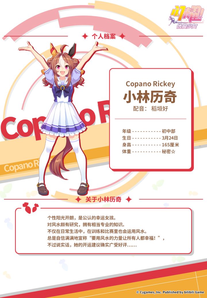 ✦[阴阳八卦☆开运服]小林历奇 能力介绍✦ 距离适应性:英里、中距离 跑法适应性:领跑、跟前 场地适应性:泥地 固有技能:[时来运转,龙腾九霄] 12月30日 12:00起,游戏内已开放“精选 优俊少女招募”! 精选招募开放期间,抽取招募并获得上述养成优俊少女,将附赠“[阴阳八卦☆开运服]小林历奇的碎片”×90,还请不要错过! 今后也请多多支持《闪耀!优俊少女》!