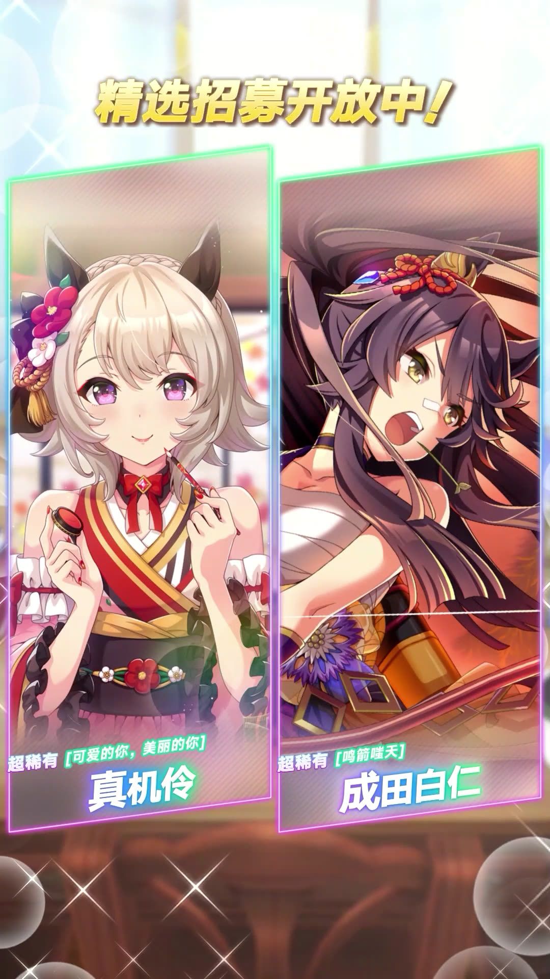 新的超稀有[可爱的你,美丽的你]真机伶、 [鸣箭嗤天]成田白仁 等协助卡登场! 本次招募中新登场的协助卡,在当前开放的剧情活动“晚秋骏典乐争鸣”中可获得加成! ■新登场的协助卡 超稀有 [可爱的你,美丽的你]真机伶(配音:篠原侑) 超稀有 [鸣箭嗤天]成田白仁(配音:衣川里佳) 普通 [特雷森学园]真机伶(配音:篠原侑) 6月21日 12:00起,游戏内已开放“精选 协助卡招募”,还请不要错过!