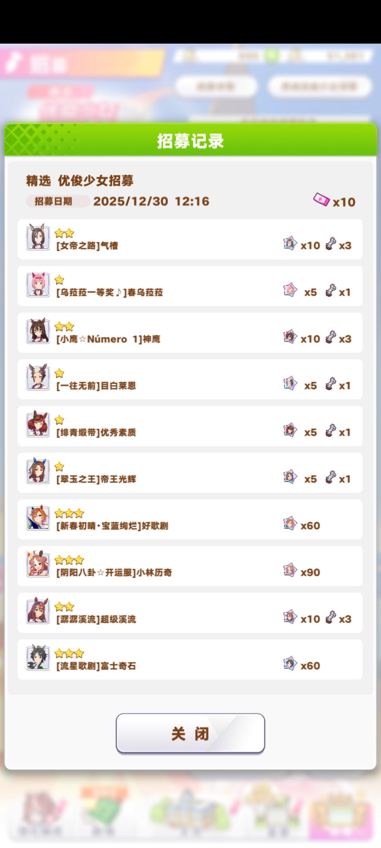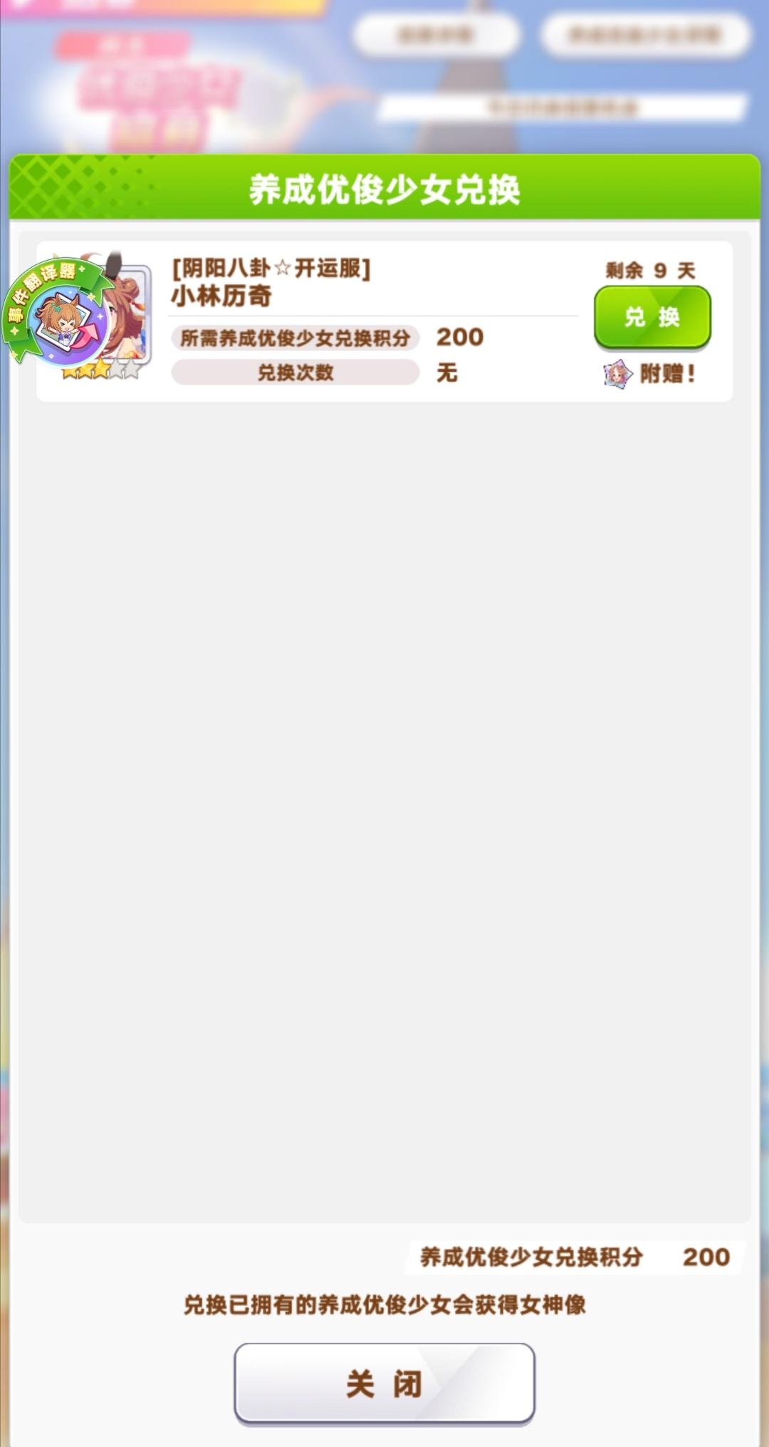 ✦[阴阳八卦☆开运服]小林历奇 能力介绍✦ 距离适应性:英里、中距离 跑法适应性:领跑、跟前 场地适应性:泥地 固有技能:[时来运转,龙腾九霄] 12月30日 12:00起,游戏内已开放“精选 优俊少女招募”! 精选招募开放期间,抽取招募并获得上述养成优俊少女,将附赠“[阴阳八卦☆开运服]小林历奇的碎片”×90,还请不要错过! 今后也请多多支持《闪耀!优俊少女》!