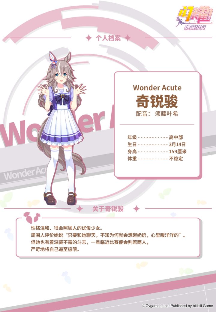 ✦[Butterfly Sting]奇锐骏 能力介绍✦ 距离适应性:英里、中距离 跑法适应性:跟前 场地适应性:泥地 固有技能:[Never Say Never] 2月24日 12:00起,游戏内已开放“精选 优俊少女招募”! 精选招募开放期间,抽取招募并获得上述养成优俊少女,将附赠“[Butterfly Sting]奇锐骏的碎片”×90,还请不要错过! 今后也请多多支持《闪耀!优俊少女》!