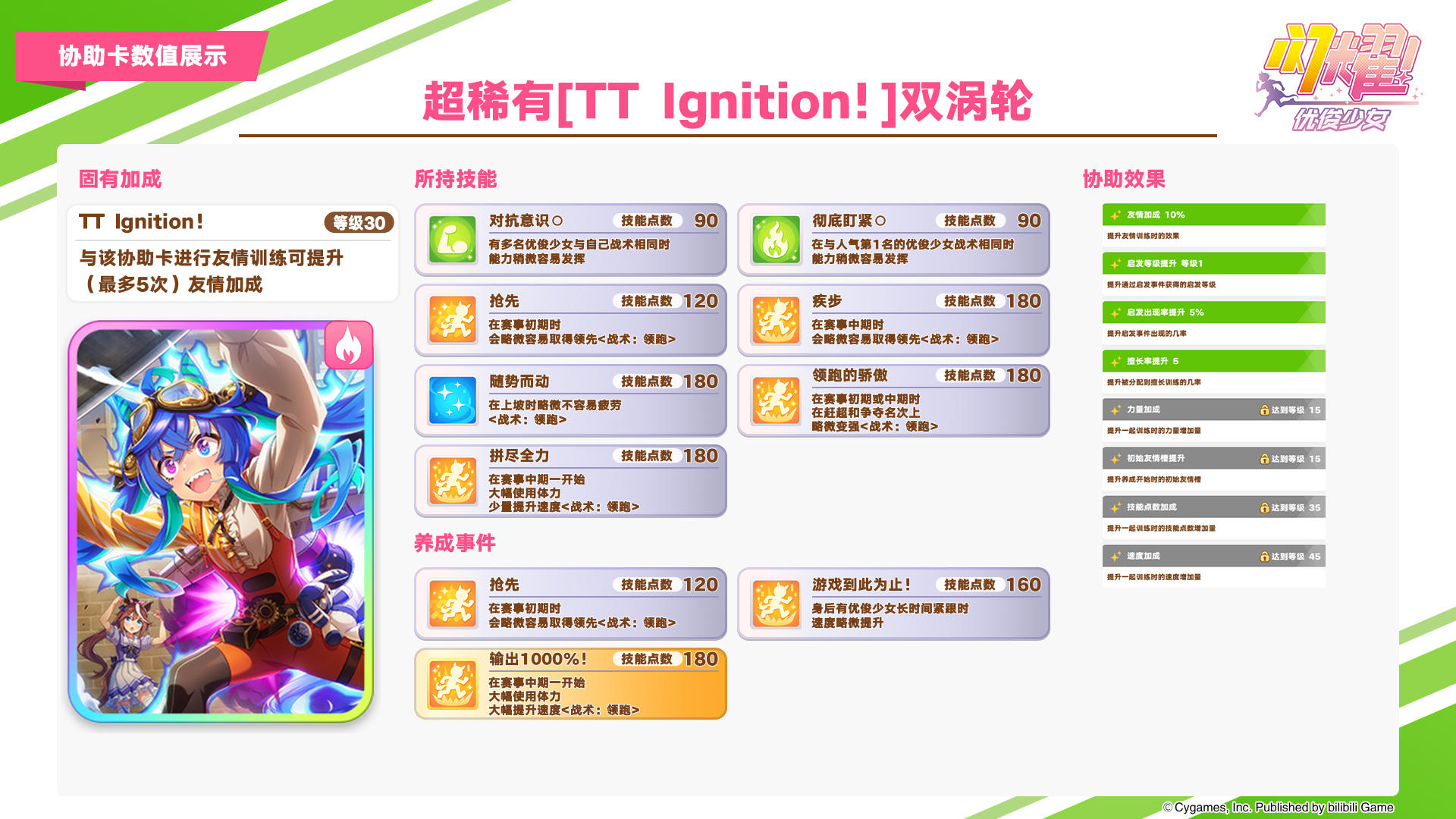 ■新登场的协助卡 超稀有 [It's on the house.]曼城茶座(配音:小仓唯) 稀有 [悠悠哉哉,顺其自然]青云天空(配音:鬼头明里) 12月30日 12:00起,游戏内已开放“精选 协助卡招募”,还请不要错过! 今后也请多多支持《闪耀!优俊少女》!