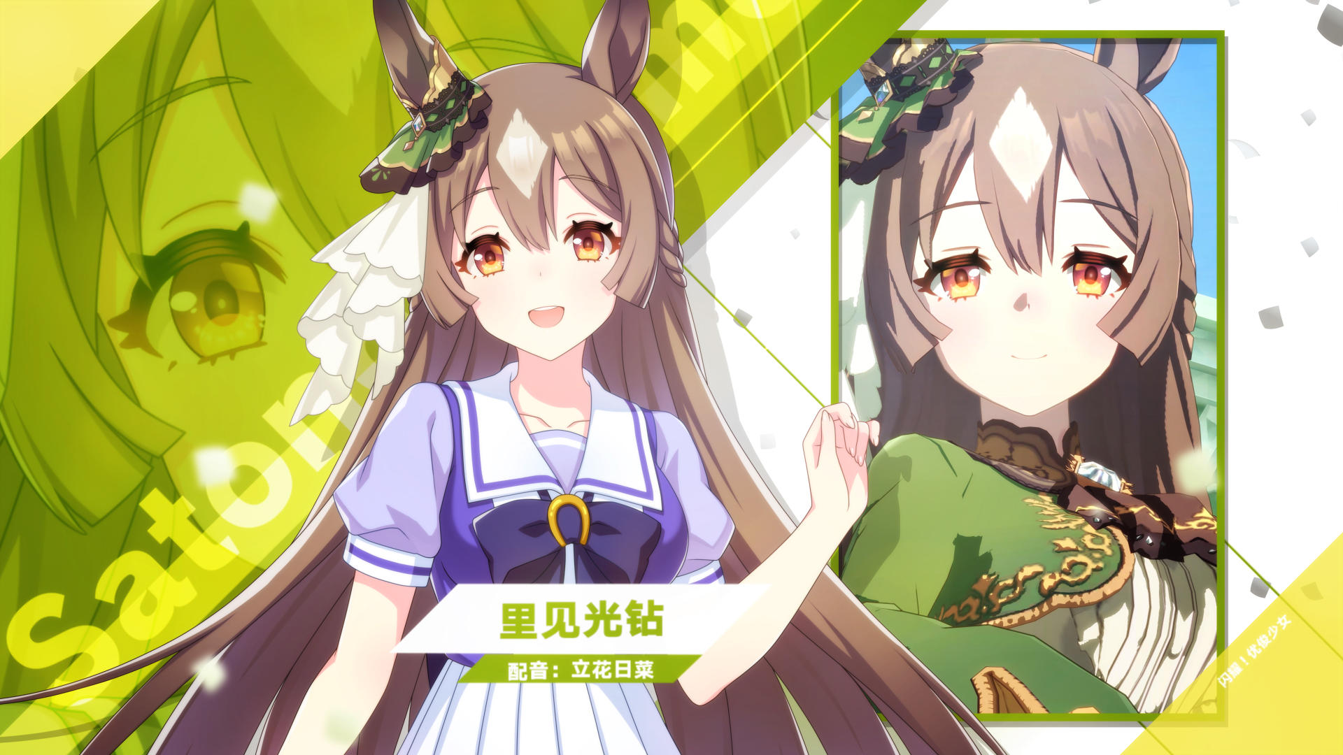 全国的新人训练员们,来认识一下那些在特雷森学园和我们一起实现梦想的学生吧! 出生于富裕之家、被视作掌上明珠般呵护着长大的“里见光钻”。表面上是个性率真、行事稳重的大小姐,但其心中隐藏着如钻石般坚韧的强大意志。 配音:立花日菜