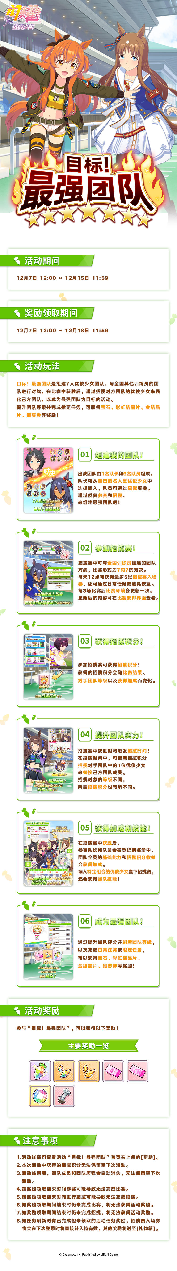 ■新登场的协助卡 超稀有 [奔向理想的熏风]气槽(配音:青木琉璃子) 稀有 [金色志向]黄金城(配音:香坂沙希) 12月5日 12:00起,游戏内已开放“精选 协助卡招募”,还请不要错过! 今后也请多多支持《闪耀!优俊少女》!
