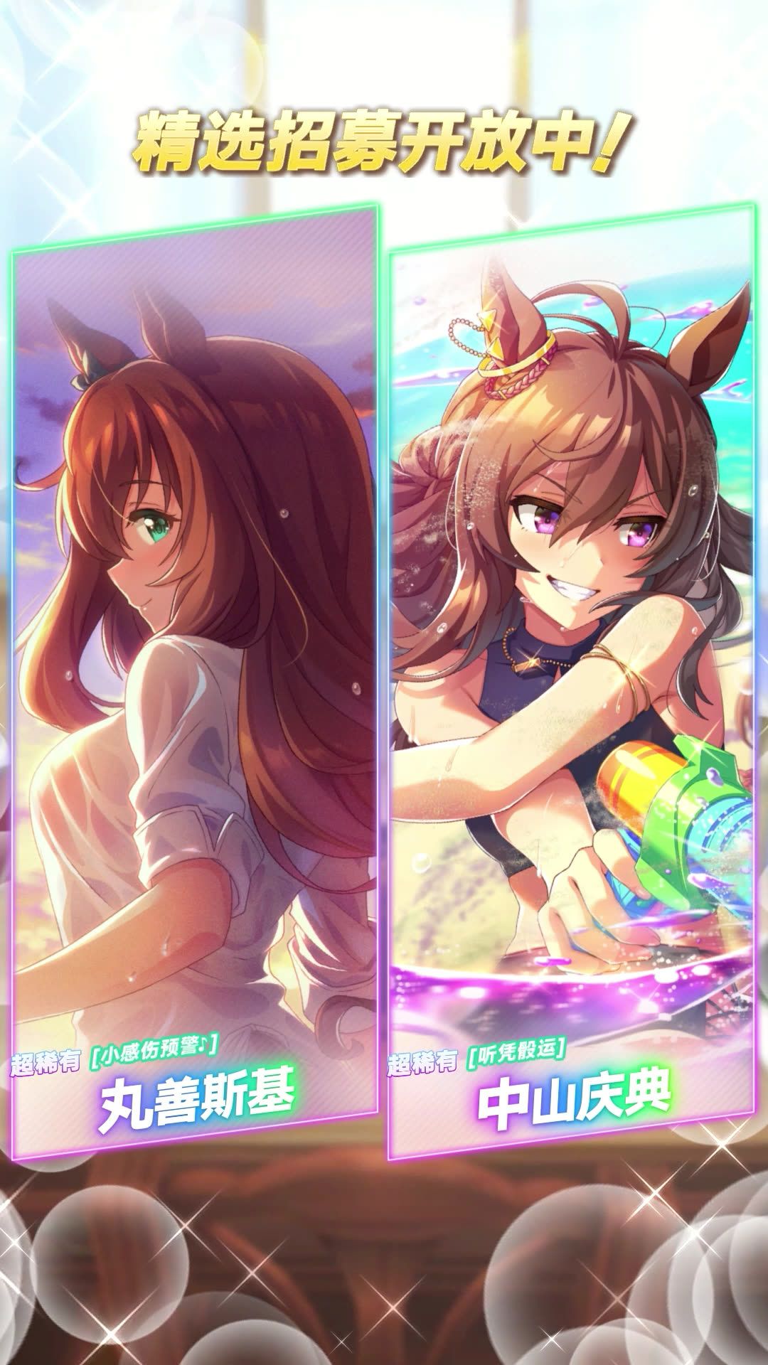 新的★★★养成优俊少女[涟漪佳人]目白麦昆(配音:大西沙织)& [RUN!乱!发射!!]黄金船(配音:上田瞳)登场! 本次招募中新登场的养成优俊少女,在当前开放的剧情活动“大混战?!夏日☆假期”中可获得加成! ✦[涟漪佳人]目白麦昆 能力介绍✦ 距离适应性:中距离、长距离 跑法适应性:跟前 场地适应性:草地 固有技能:[波光粼粼为海,璀璨闪烁是你] ✦[RUN!乱!发射!!]黄金船 能力介绍✦ 距